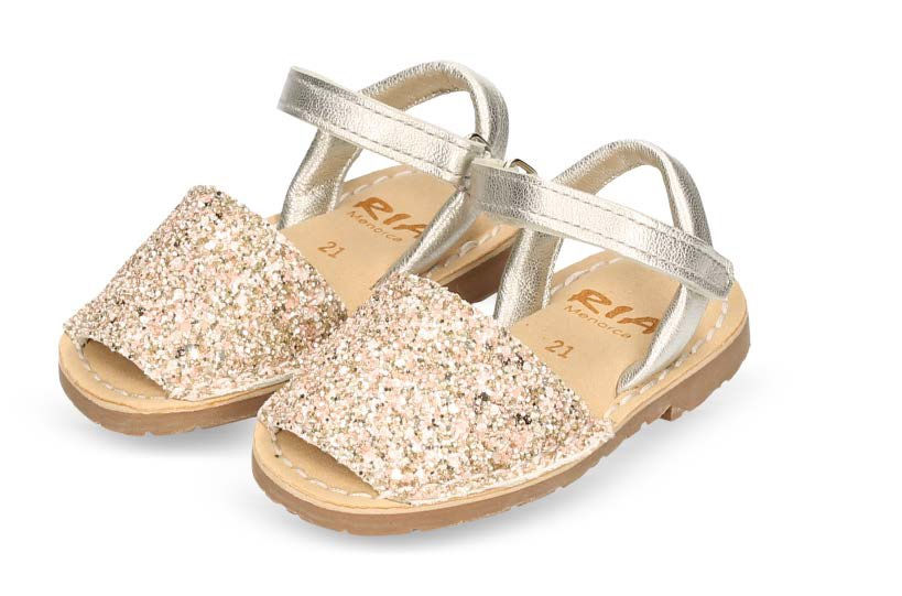 Diseñadas para brillar. Avarcas menorquinas para que las más pequeñas disfruten a lo grande. Gracias a los materiales neumáticos de la suela que aportan libertad y confort en cada pisada. Su doble tira con cierre de velcro permite regular la medida para ajustarse suavemente al pie. El color platinado descansa sobre el brillo de la pala. Un zapato con personalidad y estilo.