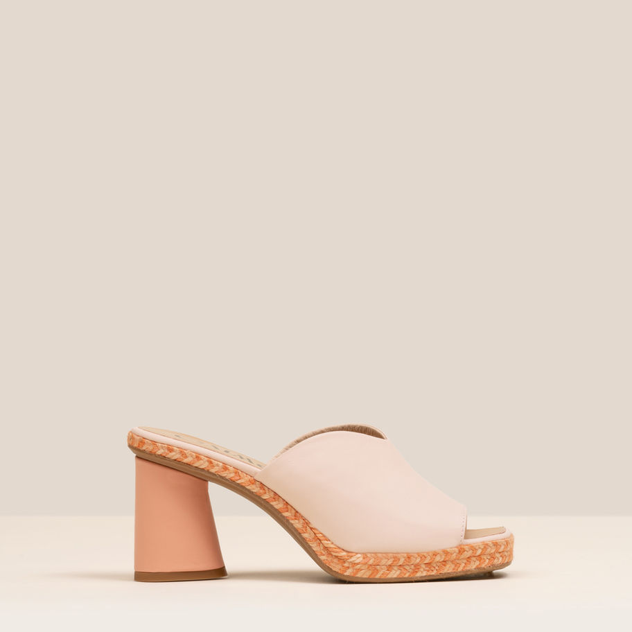Zueco de mujer en piel. Forro y plantillas acolchadas de piel con tacón de yute ecológico de 9,5 cm de altura y plataforma de 2 cm. Diseñadas y fabricadas artesanalmente en España, son la elección perfecta para ganar de altura y darle a tu look un toque final llamativo y sofisticado sin perder la comodidad.